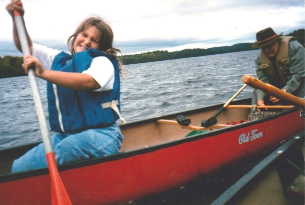 When kids are shorter simpler trips work the best, and as they get older the trips can increase in length and complexity. In one photo Marissa and Grandpa are paddling on a day trip that was a part of a three day trip to Brule Lake in the Boundary Waters.