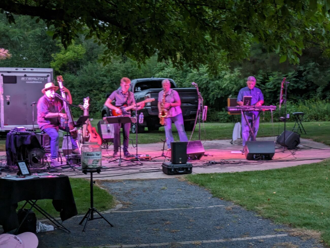 Thursday night the Menomonie Public Library held its last Music over Menomonin concert of the season. This is one of the sure signs that summer is ending. It was, as usual, a great concert with local band Balterdash, headed up by the ever-present Sue Orfield.