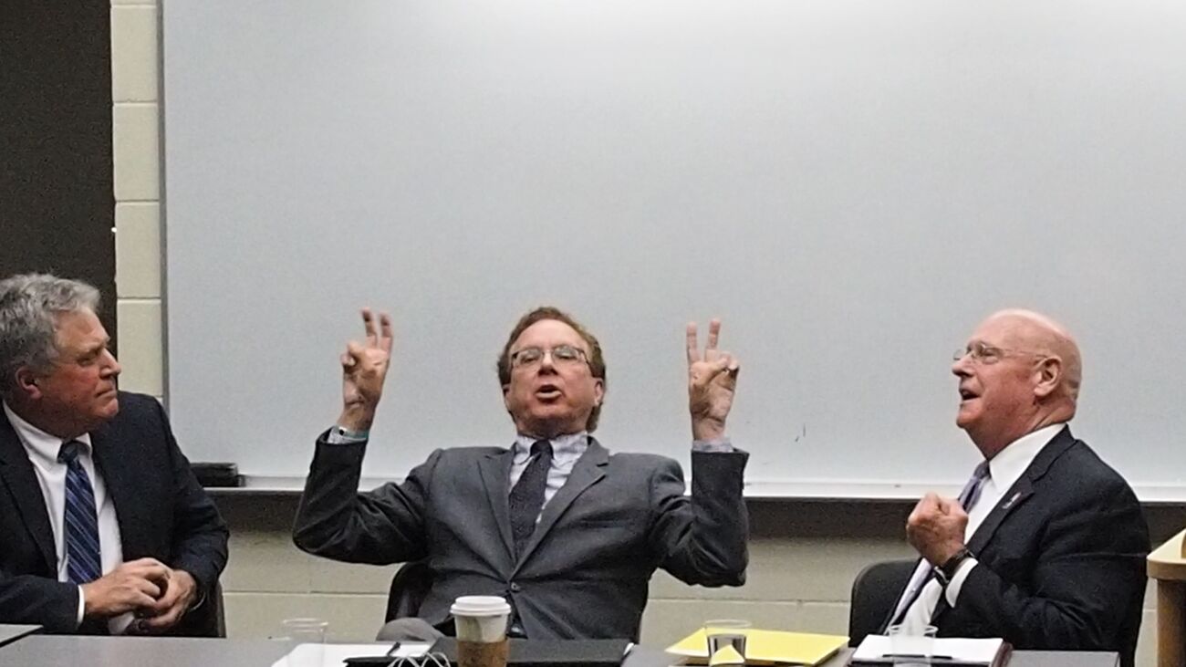 The following is a complete video of the panel. John Nichols took great exception to the resolution and it was, of course, heartily defended by Bob Meyer and Tim Higgins.  Serious questions were raised by a number of faculty, students, and citizens in the audience.