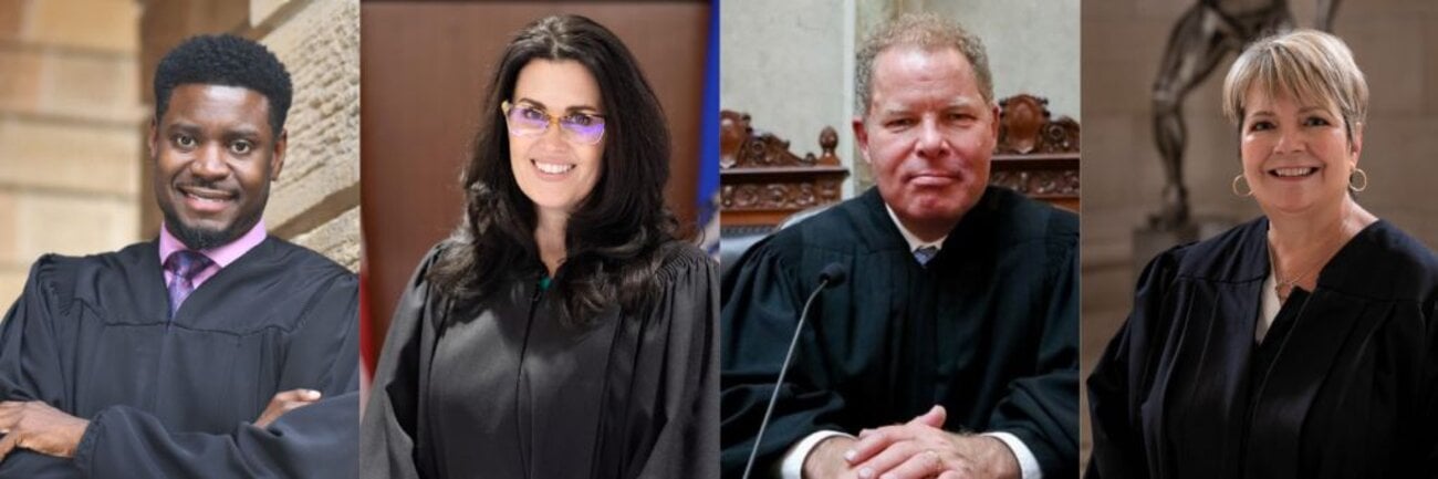 From left, Dane County Judge Everett Mitchell, Waukesha County Judge Jennifer Dorow, former Supreme Court Justice Dan Kelly, and Milwaukee County Judge Janet Protasiewicz.