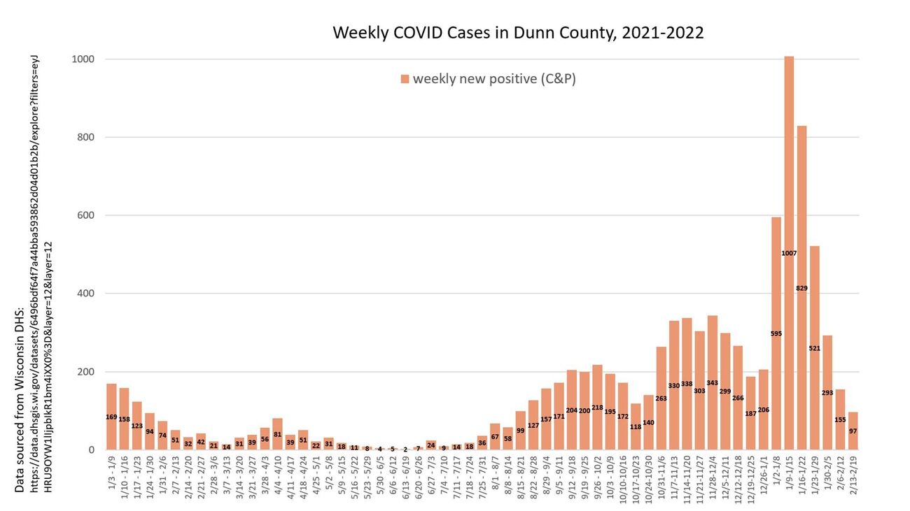 Weekly data update for Dunn County. Cases continue to fall, which is excellent news. Cases, hospitalizations, and ICU patients are at their lowest levels state-wide since August. Woo-hoo! That said, they are still HIGH. We had four more hospitalizations and another death in our county this past week. This tragedy is not yet ended. There is reason to be cautiously (always with this virus) optimistic, as percent positivity is way down to about 6% state-wide. This means that the decrease in cases is likely real and not due to under-testing or under-reporting of at-home tests (which we know are occurring). Therefore, cases will likely continue to decline; there is less virus circulating around and fewer vulnerable people who can catch it if exposed (a very high proportion of the population now has either infection-induced or vaccine-induced immunity or both). We will likely start to see more variability in case numbers week to week as numbers get lower, depending on if/when the virus finds its way to particular enclaves of vulnerable folks who haven't had it yet, be they vaccinated or not (it's still hunting for me - don't tell it where I am!). (Seriously, this is like the longest game of hide and seek I've ever played.) We may also plateau out at a lower but still high level as it continues to find those folks, but that will depend on luck as well as individual behaviors and events. We'll be able to infer that widespread community transmission is no longer occurring when case rates are even lower and when percent positivity is below 5% (and the lower the better), so we're not there yet.Good criticism of my previous estimate for Omicron case fatality rates led me to a different method - if you look at the curves of each wave, for both cases and deaths, you will see that they follow a very similar shape, usually offset by about one week. Comparing the peak average of daily deaths to the peak average of daily cases can give a fairly accurate picture, therefore, of the case fatality rate. When we do that for Omicron, we get a mortality rate of about 0.36%. This is about 1/4 the case fatality rate for previous variants of COVID but still more than 3x higher than the rate for influenza. The Omicron rate is likely to truly be lower than this, as we know that with this surge there are many more unreported cases (and thus a higher denominator) due to pandemic fatigue, less severe or absent symptoms in many, and the availability of at-home tests that don't get counted. But still, COVID is right now about 3-8x more prevalent than flu is during a typical flu season, so both that and the increased mortality rate make it reasonable to continue precautions.So, at present, the trends are looking good and hopeful that this spring will be one of relative calm COVID-wise. We're not there yet. And anything could happen. BUT if you haven't already, it's time to start thinking about how you'll make decisions about risk moving forward, as the landscape changes and shifts. At what point (if not already) will you feel safe gathering with a friend or friends? Will you have them test beforehand? How will you decide about going out to eat? Going to the gym? The answers will vary depending on your personal medical, infection, and vaccination history and risk tolerance, as well as the potential ramifications of having to miss work or, if you have young ones who are unvaccinated, having kids who will need to quarantine. Right now, I have a kid in the school musical who'd be mighty sore with me if I brought COVID home and infected them, forcing them to isolate and miss being in the show. So that's part of my current COVID-cautious stance. Edited to add: We still don't know what's going to happen with BA.2 here. So far, it hasn't done much. It's likely it will just expand the tail of our Omicron surge, but we'll see. https://www.npr.org/.../108.../omicron-ba2-variant-spread...