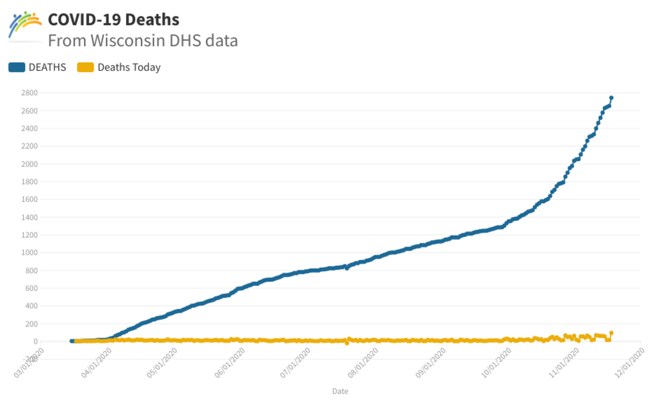 In response to the quickly-worsening situation, Dane County today took drastic measures, banning all indoor gatherings until Dec. 16, and imposing stiff ($1000/violation) fines. That Thanksgiving Dinner for the family in Dane County could become very expensive indeed.