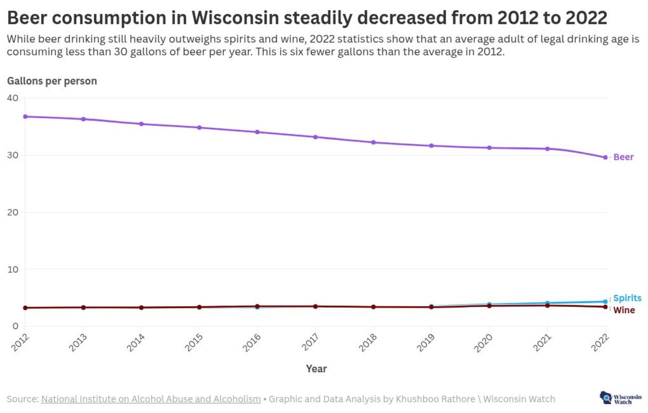 DataWatch: Wisconsin residents of legal drinking age consumed 35+ gallons of alcohol a person in 2022