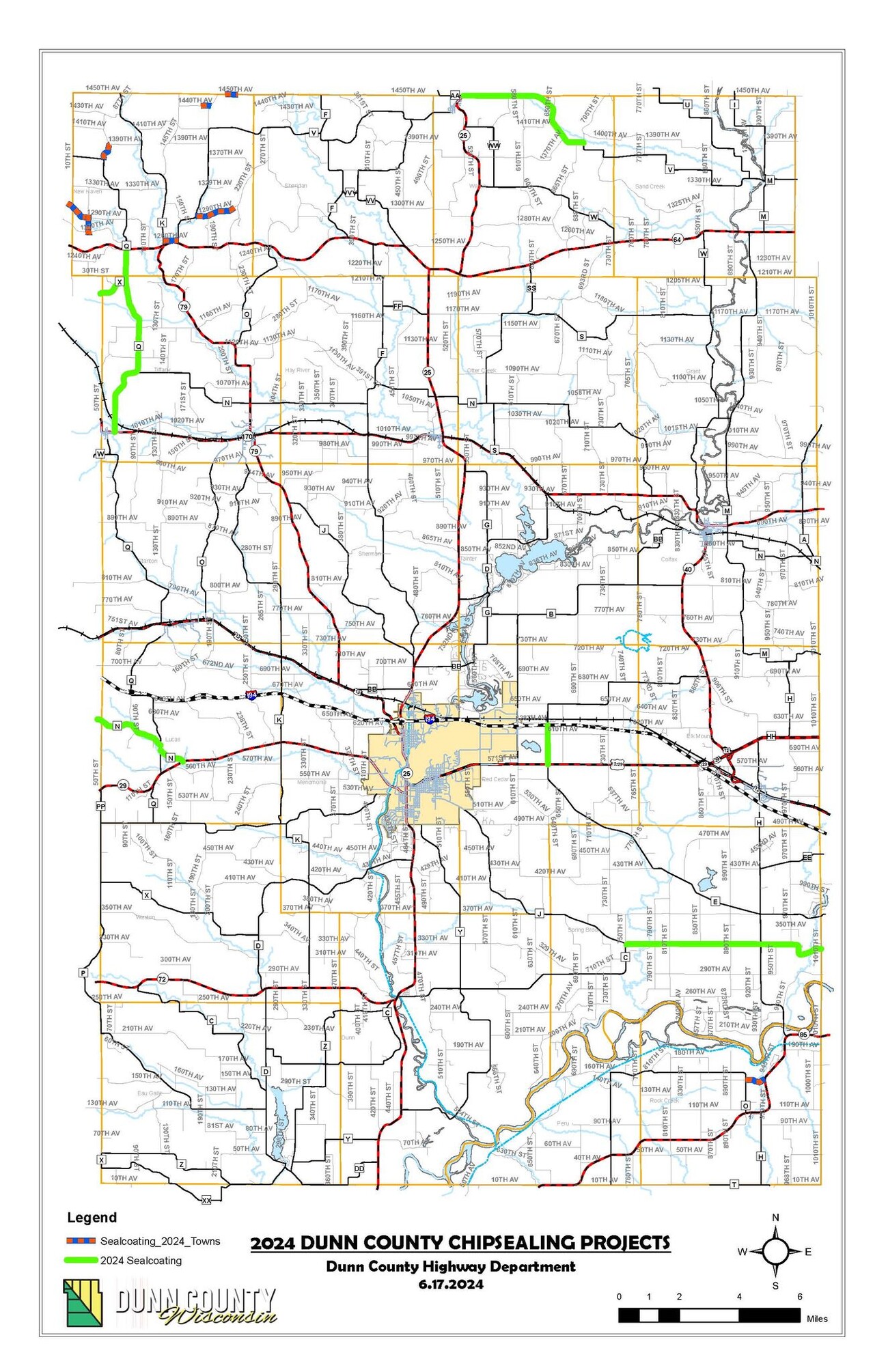 The Dunn County Highway Department is scheduled to perform sealcoat applications on various roadways starting July 8 – July 18. The roadways will be open to traffic during the application process with flagging operations & pilot vehicles being utilized for traffic control.