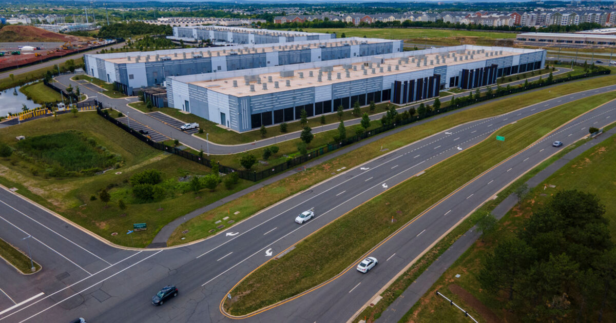 FILE - Cars drive past data centers that house computer servers and hardware required to support modern internet use, such as artificial intelligence, in Ashburn, Virginia, July 16, 2023. (AP Photo/Ted Shaffrey, File)