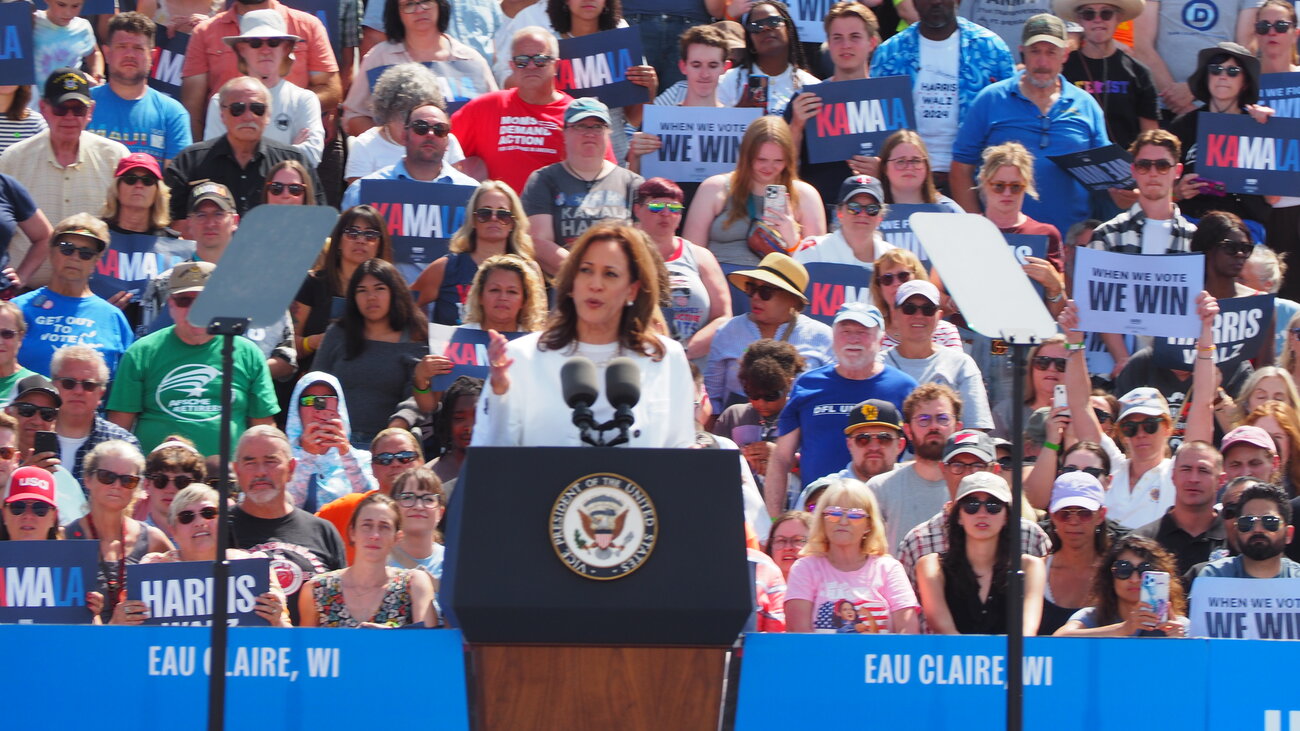 Vice Presidental and Presidential hopefuls Tim Walz and Kamala Harris held a rally in Eau Claire today to a crowd of over 12,000 people at the Eau Claire Event District. We will have video of the event later tonight. People reported waiting in traffic for two hours and giving up before getting there. At around 11 AM police closed off the main approach to the venue, which resulted in people parking on the road and walking in for up to two miles.