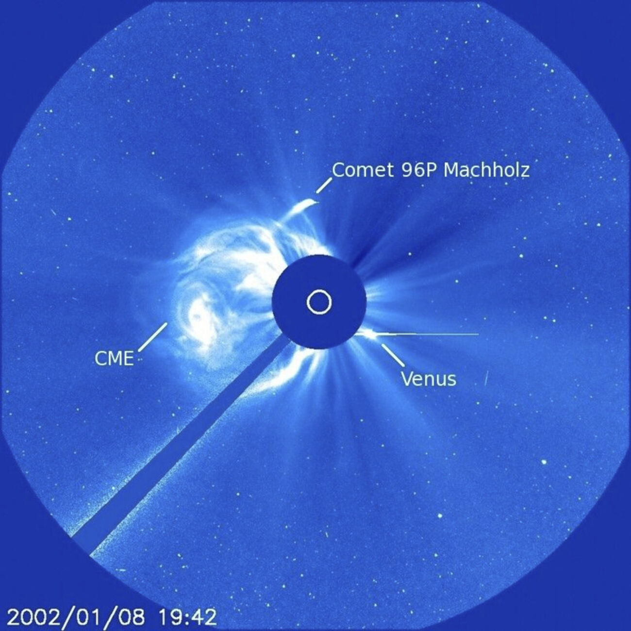 This image provided by NASA shows comet 96P Machholz which orbits the Sun about every 6 years, and is suspected to cause the Southern Delta Aquariids meteor showers. (NASA/ESA/SOHO via AP)
