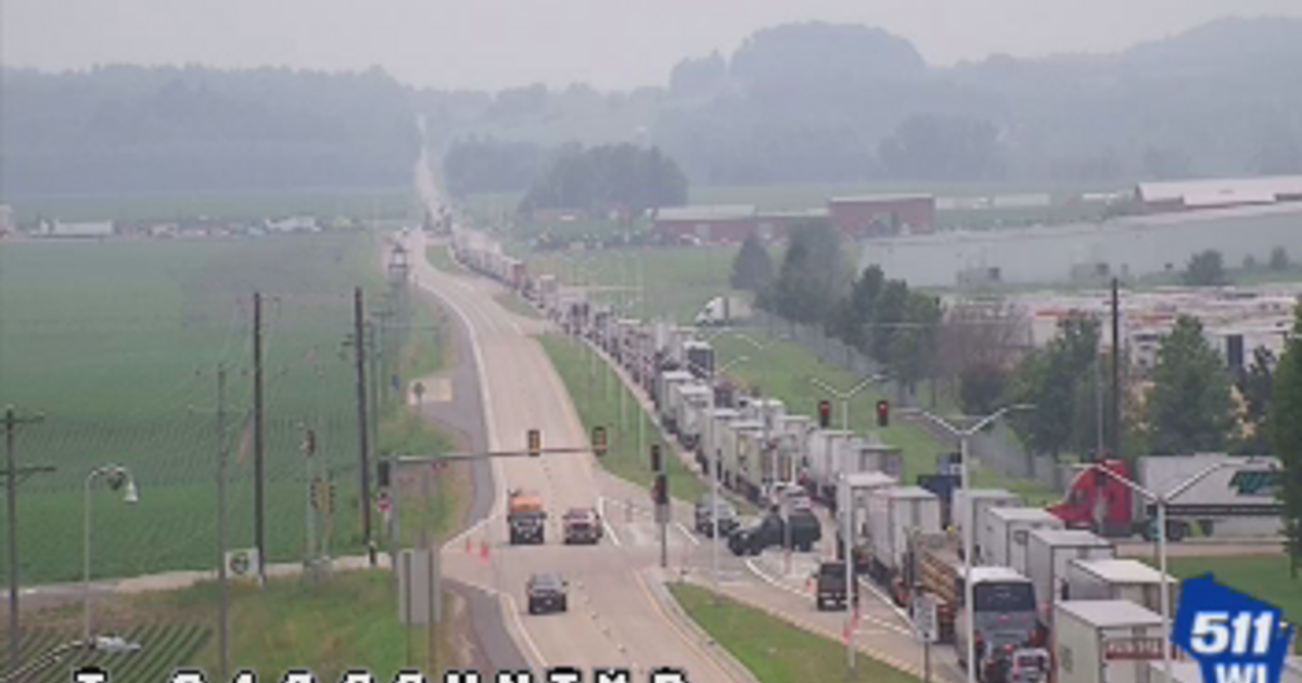Various sources are reporting that the accident occurred when on semi collided with another that was moving slowly along the shoulder of the highway. One of the trucks was burning. Emergency responders are attempting to clear the road but it may be several hours before the road is re-opened.