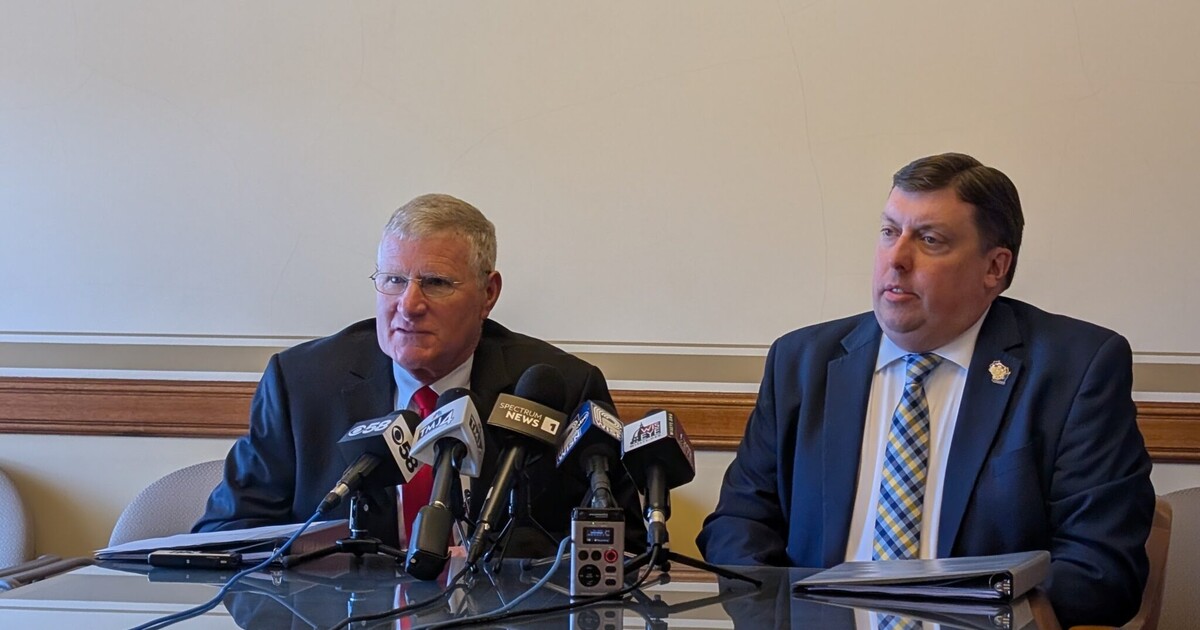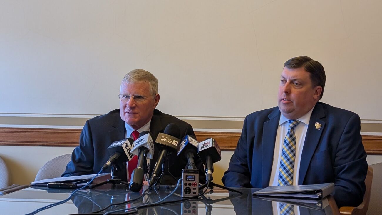 Sen. Howard Marklein (R-Spring Green) and Rep. Mark Born (R-Beaver Dam) told reporters that they would be starting from “base” with the budget. (Photo by Baylor Spears/Wisconsin Examiner)