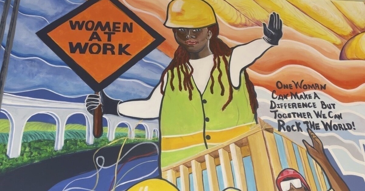 FILE - A mural by artist Tene Smith is seen near the entrance of Chicago Women in Trades, a nonprofit dedicated to training and retaining women in the skilled construction trades is photographed April 1, 2025, at the facility in Chicago. (AP Photo/Claire Savage, File)