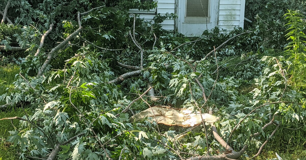 Most of the damage reports I have seen are from the Downsville area and the area around the Red Cedar Clinic in Menomonie. Power has been out in many areas around the county with reports of trees on power lines in some places. Be cautious, as some trees may still be on power lines. Dunn County Energy is still reporting several hundred homes without power in the county.