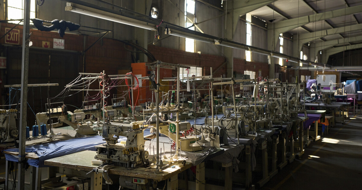 Sewing machines are lined up inside the empty Tzicc clothing factory following the threat of U.S.-imposed tariffs in Maseru, Lesotho, Tuesday, July 22, 2025. (AP Photo/Bram Janssen)