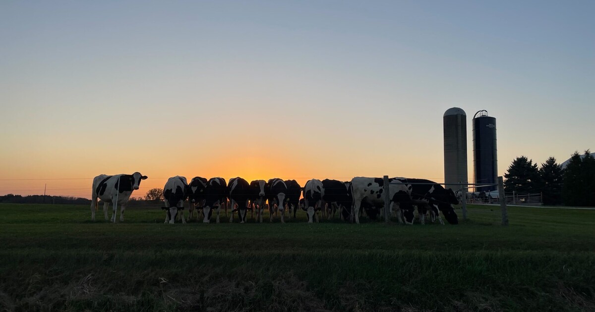 Dairy cows huddle at sunset on a farm in Manitowoc County. Advocates and farmers say an ICE raid that took 24 migrants into custody Sept. 25 poses a threat to the state’s dairy farms and the immigrant workers that keep the industry afloat. (Photo by Andrew Kennard/Wisconsin Examiner)