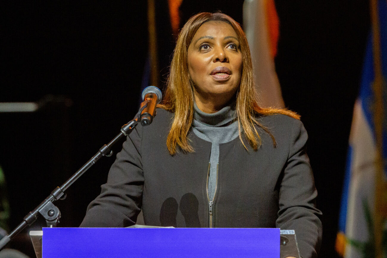New York Attorney General Letitia James speaks at a campaign rally for New York City Democratic mayoral candidate Zohran Mamdani in New York on Monday, Oct. 13, 2025. (AP Photo/Ted Shaffrey)