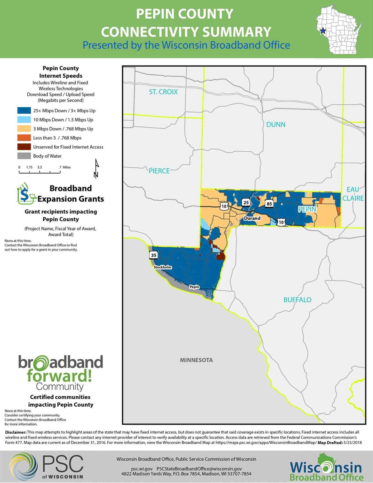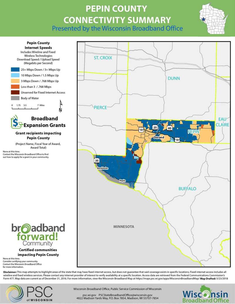 Based on available data, broadband access in seven counties running along the Mississippi River in western Wisconsin lags behind other parts of the state. Portions of Pepin, Buffalo, Trempealeau, La Crosse, Vernon, Crawford and Grant counties have little to no broadband service.