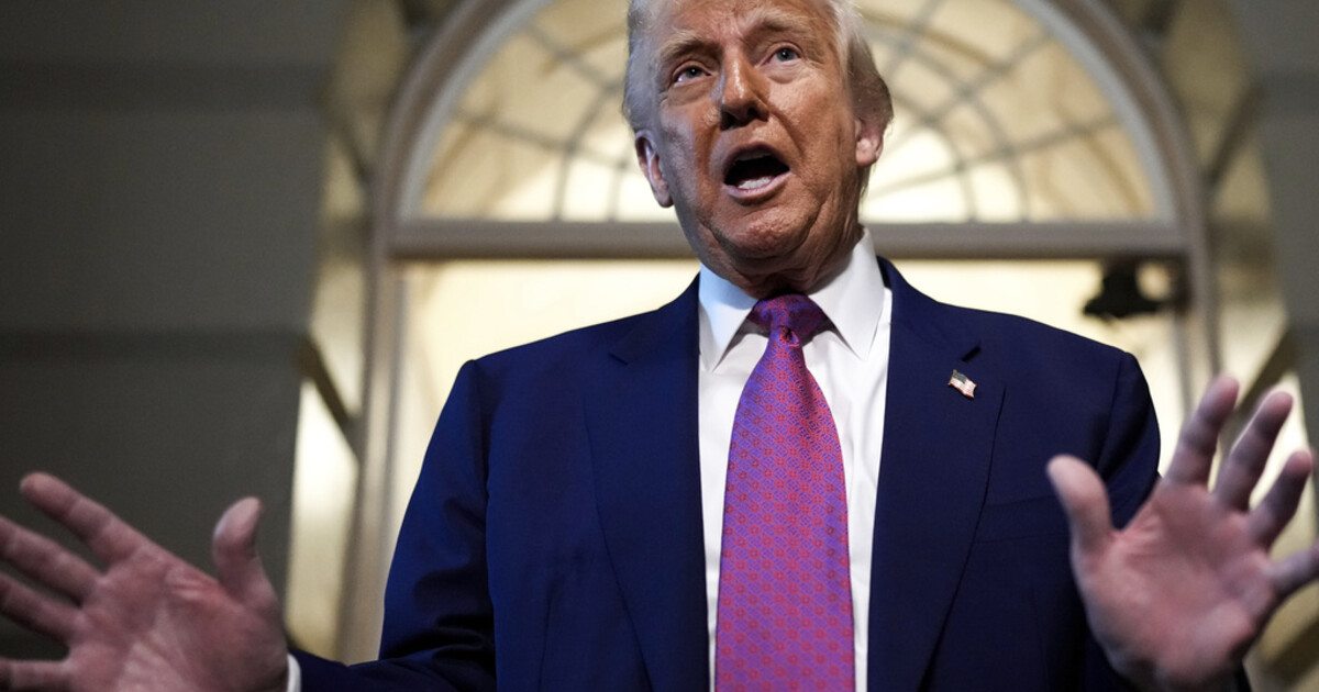 President Donald Trump speaks to reporters after departing a House Republican conference meeting, Tuesday, May 20, 2025, at the U.S. Capitol in Washington. (AP Photo/Julia Demaree Nikhinson)