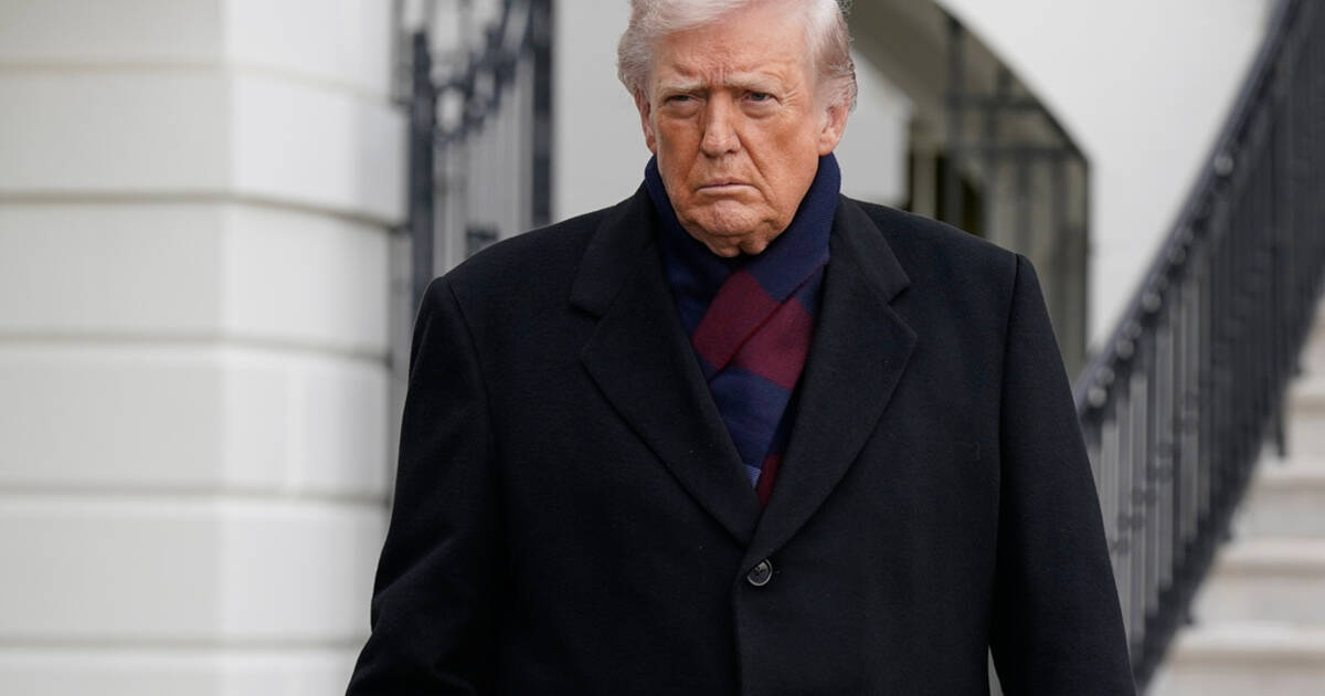 President Donald Trump talks to reporters as he departs from the South Lawn of the White House, Saturday, Dec. 13, 2025, in Washington, en route to Baltimore to attend the Army-Navy football game. (AP Photo/Jose Luis Magana)
