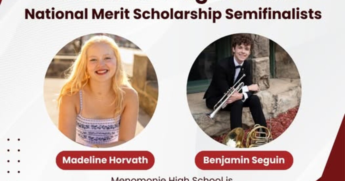 Please join us in congratulating Menomonie High School students Madeline Horvath and Benjamin Seguin on being named National Merit Scholarship Semifinalists. With two students named as semifinalists, MHS is "Tops in the Big Rivers Conference" this year. According to the NMSC, semifinalists represent approximately one percent of all students nationally who are eligible for consideration each year.