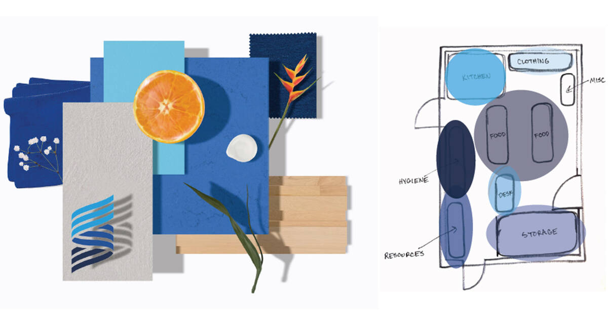 Among the studio course proposals, EWKJ Interiors’ design was selected for the redesign of the 480-square-foot pantry, which offers food, personal hygiene items, winter coats, school supplies and other items.