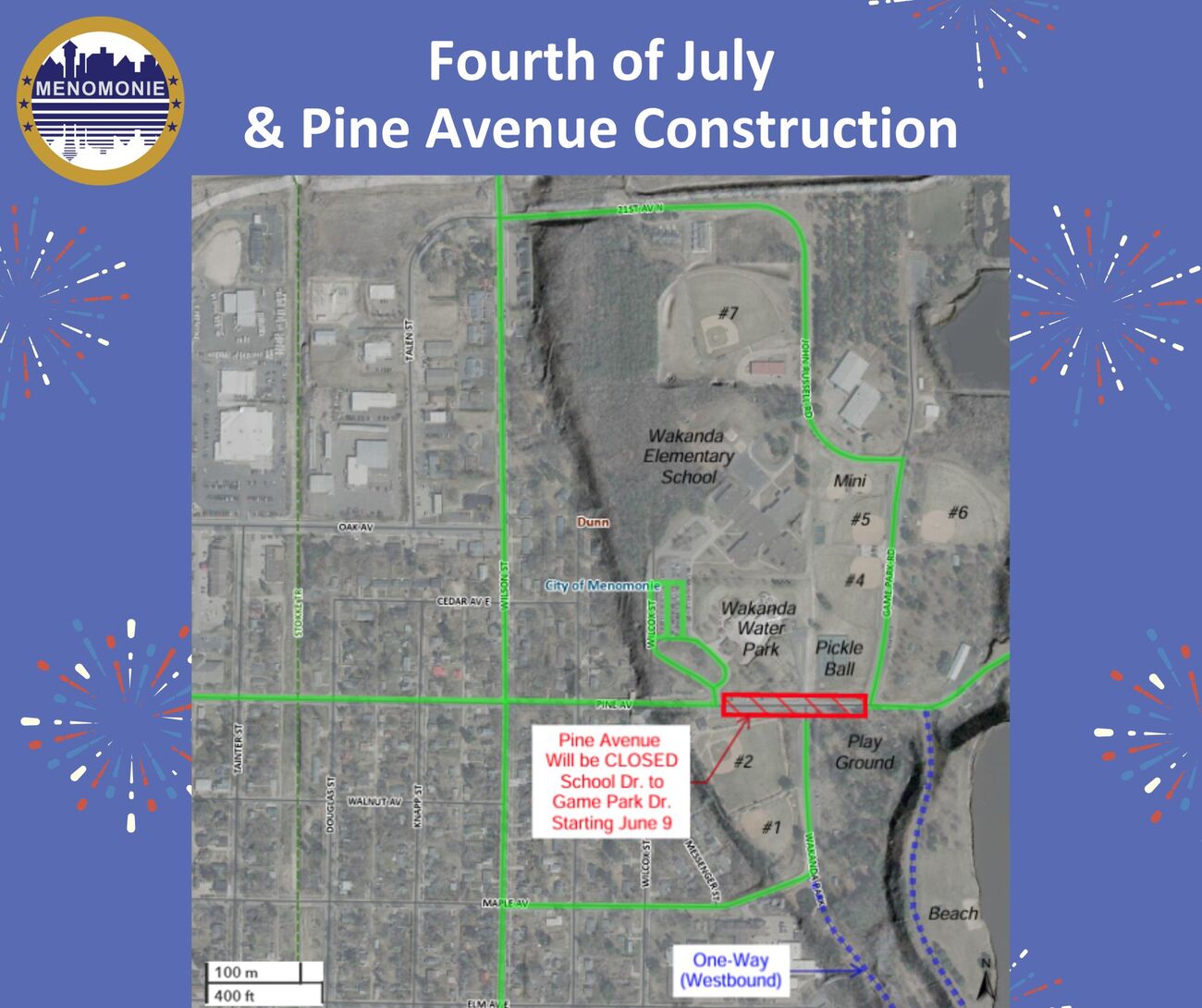 Planning to head to Wakanda Park for the Fourth of July festivities? Just a heads-up that construction on Pine Avenue is still in progress. The stretch between the Wakanda Elementary driveway and Game Park Road is closed, so your usual route might take a little longer.