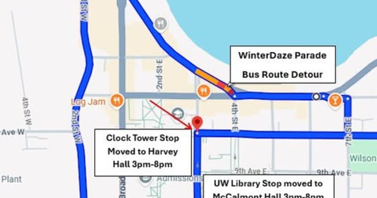 Clocktower Stop: Moved to Harvey Hall (Wilson St. & 3rd St.)